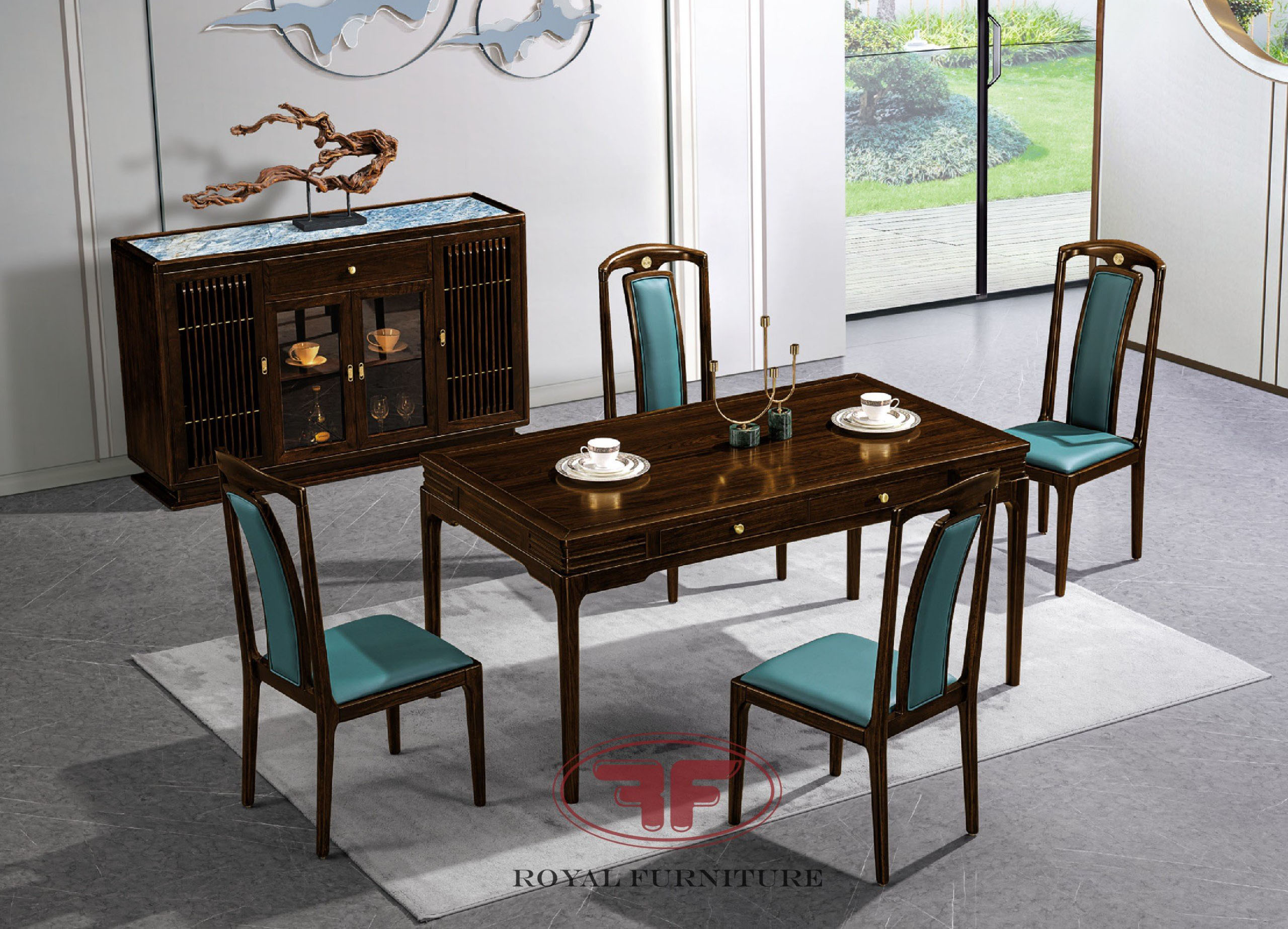 Nếu bạn thích và đang tìm kiếm bộ bàn ăn với ghế bọc da và bàn chữ nhật mặt gỗ thì ngay bây giờ Nội thất Tân Hoàng Gia sẽ giới thiệu đến bạn bộ bàn ăn chữ nhật mặt gỗ 6 ghế bọc da phong cách nội thất indochine 2380.