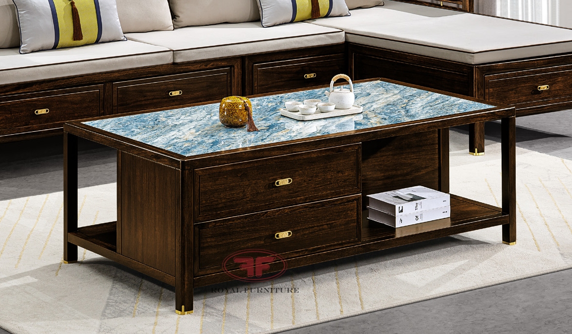 Bàn trà indochine mặt đá 2312 được thiết kế tích hợp thêm 2 ngăn kéo tăng diện tích không gian lưu trữ. Hơn nữa, bàn trà mặt đá indochine 2312 còn thiết kế thêm các ngăn mở không cánh giúp bạn đặt những món đồ trang trí cực kỳ hợp lý, tạo thêm điểm nhấn và gu xếp đồ của gia chủ. Mặt đá của bàn trả 2312 có vân xanh lạ mắt tạo sự thu hút người nhìn.